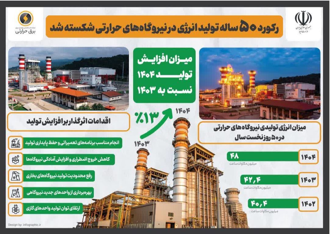 رکورد ۵۰ ساله تولید انرژی در نیروگاههای حرارتی شکسته شد