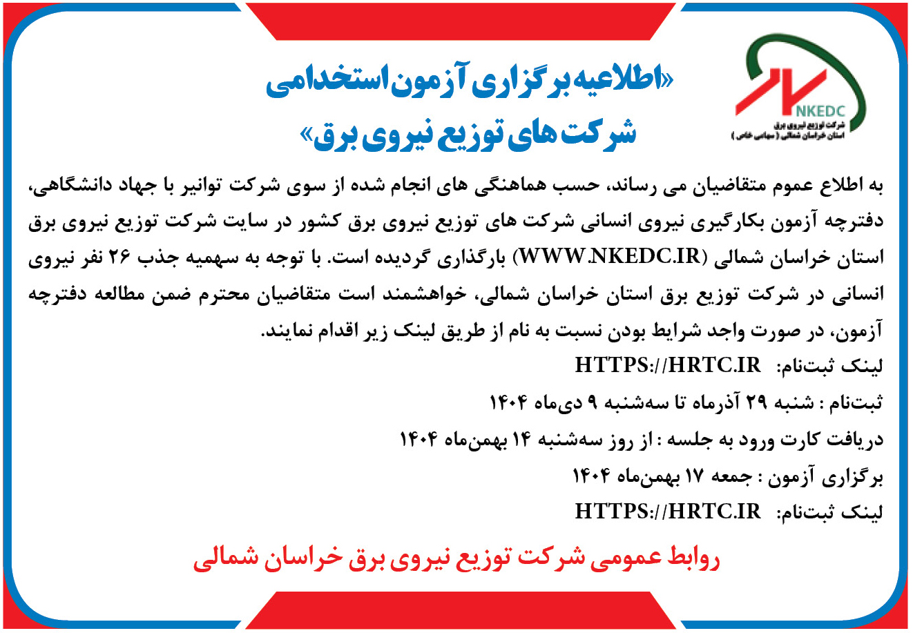 آگهی استخدامی شرکت توزیع برق در روزنامه اترک