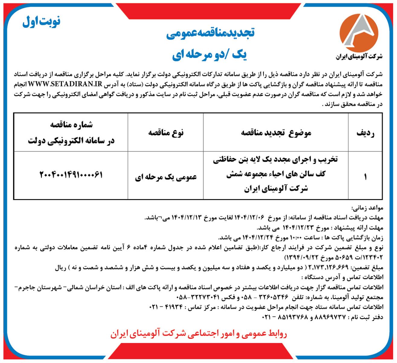 تجدید مناقضه عمومی شرکت آلومینا